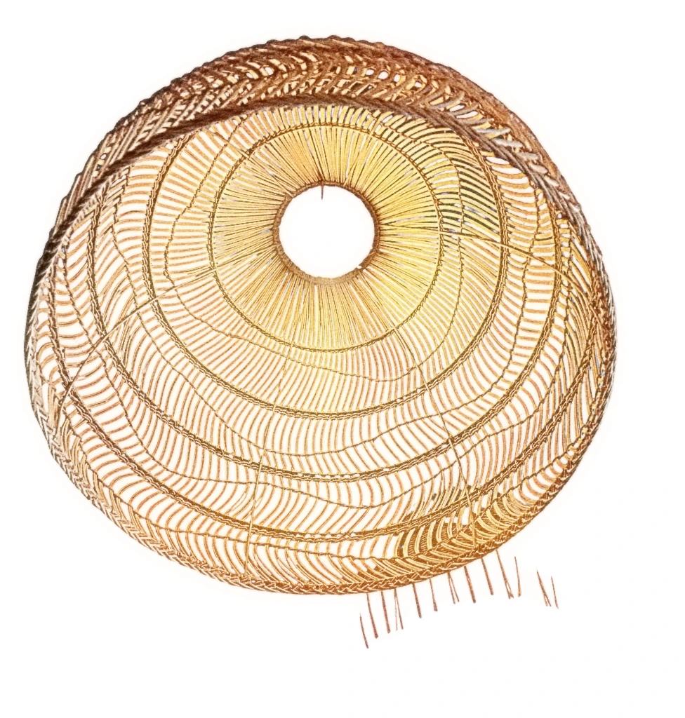 La tessitura a fasce orizzontali crea motivi di luce a strisce su soffitti e pareti, mentre la costruzione aperta consente una morbida luce ambientale. Perfetto per cene intime o accoglienti angoli lettura.